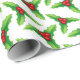 Papel De Presente Holly Berries e Folhas de Natal Vermelho e Verde