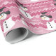 Papel De Presente Homem de Neve Rosa Padrão