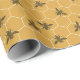 Ouro âmbar honeycomb rede com um padrão de abelhas voadoras para embrulhar presentes para uma celebração de aniversário ou feriado para crianças e adultos, e embrulhar presentes para um apicultor profissional.