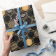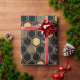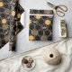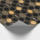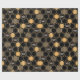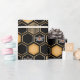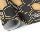 Este design contemporâneo apresenta um padrão geométrico de coloração dourada das colmeias, mamangabas e um fundo preto.