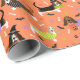 Cães de Caça-Basset com casacos castanhos, pretos, brancos e limões vestem chapéus de bruxa e figurinos de Halloween com morcegos, patas e ossos de cães espalhados.