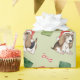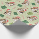 Geleia branca com ossos canaviais, presentes, e um chapéu de Papai Noel sobre fundo verde-claro.
