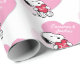 Dia de os namorados de amendoins | Ver o Snoopy a segurar-se num coração vermelho, com corações cor-de-rosa no fundo, que dizia: "abraços e beijos". Adicione nomes para personalizar este papel de empacotamento para a sua querida!