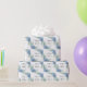 Hortênsias azuis em um belo papel de presente personalizado para chá de panela ou casamento em fundo branco. Uma maneira perfeita de embrulhar todos os presentes do chá de panela ou presentes de casamento para a noiva ou noivo. Perfeito para um casamento em qualquer estação, as hortênsias aquareladas são simplesmente lindas. Elegante e sofisticado.