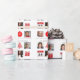 Adicione 5 fotos e texto para personalizar este papel de presente de colagem de fotos exclusivo de Natal. Com ícones modernos em vermelho.