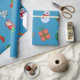 Ícones azuis que embrulham papel com Papais noeis, presentes, Papais noeis de trenó, renas, árvore de Natal, estocagem, bauble e boneco de neve. Este papel de embrulho dá a qualquer presente o espírito de Natal com estilo. Você pode mudar o fundo azul deste presente de Natal para qualquer outra cor, se quiser.