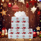 O Pai Natal bonito puxando o seu trenó vermelho através de um dia aqua, inverno branco. Os flocos de neve estão caindo, os gelo estão caindo, enquanto as árvores brancas estão acesas com fundo vermelho. Alguns designs têm um aqua e um stripe branco caipira superior e inferior.