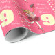 Papel de embrulho de aniversário num belo design de bolinhas vermelho-rosado, branco e amarelo-loura-cabeleira-bailarina. Personalize este artigo de aniversário feminino com seu próprio nome e idade. Atualmente, lê Feliz Aniversário Monica 9 hoje. Perfeito por embrulhar um presente especial de nono aniversário. Desenvolvido exclusivamente pela Sarah Trett.