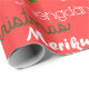 Este papel de embrulho é coberto com "Feliz Natal" em várias línguas diferentes.