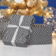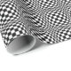 Este papel de envolvimento caracteriza um design preto e branco do tabuleiro de damas, que crie uma ilusão óptica.