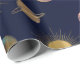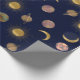 Papel De Presente Ilustração do Espaço da Lua Solar Dourada Azul