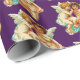 Papel de enrolamento com um padrão repetitivo. Projetado com um par de querubim anjinho doce com asas brancas e macios e vestidos em roupas diafranosas. Um sussurrando silenciosamente no outro ouvido. Colocado sobre um fundo roxo real.