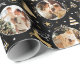 Torne seus presentes de férias especiais com papel personalizado de empacotamento de fotos. Este elegante design apresenta ilustrações ao estilo de vintage inspiradas pela opulência da era Art Deco. Inclui renas saltitantes, árvores festivas de Natal e estrelas, em conjunto com na moda retro tipografia. Personalize o modelo com três fotos favoritas e o nome do destinatário ou o sobrenome da sua família. Um design único que combina o estilo do eterno com uma reviravolta moderna! Este pacote de presentes de padrão uniforme está disponível com um acabamento mate ou brilhante. Cores impressas: preto, branco e uma cor dourada.