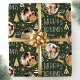 Torne seus presentes de férias especiais com papel personalizado de empacotamento de fotos. Este elegante design apresenta ilustrações ao estilo de vintage inspiradas pela opulência da era Art Deco. Inclui renas saltitantes, árvores festivas de Natal e estrelas, em conjunto com na moda retro tipografia. Personalize o modelo com três fotos favoritas e o nome do destinatário ou o sobrenome da sua família. Um design único que combina o estilo do eterno com uma reviravolta moderna! Este pacote de presentes de padrão uniforme está disponível com um acabamento mate ou brilhante. Cores impressas: verde muito escuro, branco e uma cor dourada.