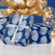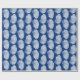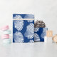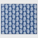Papel de enrolamento em um padrão de impressão de bloco, baseado em um invólucro de escala, em branco, sobre um fundo azul/índigo do marinho
