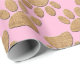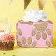 Estilo de desenho animado bonito com a impressão de pata de cachorro com textura burlap. Rolos de papel de embrulho personalizados. Um pouco de fundo rosa. Tudo o que se vê é impresso, não será usada nenhuma pincelada real no fazer deste produto, a ideia de embrulhar presentes para amantes de cães de todas as idades.