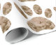 Uma pata de cachorro com padrão de camo e efeito aflita aplicado ao design.