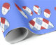 A pata do cão de desenho impresso em branco, azul e vermelho. Rolos de papel de embrulho de presente personalizados. Ideia de presente para amantes de cães.