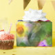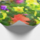Este papel de envolvimento artístico, floral é coberto com as massas das flores em cada cor do arco-íris. Aprecie o grupo abstrato do amarelo, da laranja, do rosa, do vermelho, do azul, o roxo e do branco do teste padrão em um fundo das folhas verdes. Ao ver isto, um é lembrado de uma pintura impressionista francesa.