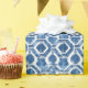 Classic geometric tile pattern in rich indigo blue with a hand-painted watercolor texture. Interlocking octagonal and diamond shapes create a timeless Mediterranean-inspired design with organic, slightly imperfect edges that give it artisan character. The monochromatic blue palette works with virtually any color scheme and brings architectural elegance to gift presentation.