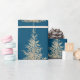 Papel De Presente Inverno elegante da árvore verde-Dourada e azul