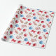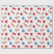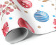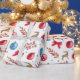 O nosso belo Papel Vermelho e Azul Wonderland de inverno apresenta uma ilustração aquática de uma paisagem maravilhosa de inverno com renas, arcos vermelhos e enfeites de natal em tons de azul e vermelho cercados por sotaques botânicos de ouro e galhos de inverno.