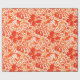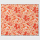 Papel de envolvimento em um impressão floral de William Morris do vintage de lírios estilizados e de íris, digital aumentado e colorido, nas máscaras da luz à tanjerina profunda em um fundo branco