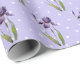 Design floral de cor d'água da íris púrpura sobre fundo de bolinhas.