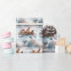 Um sorriso irlandês alegre rola brincalhão na neve, seu pelo captando a luz contra um dramático céu de inverno em um efeito de aquarela
