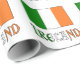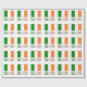 O papel de enrolamento mostra a bandeira irlandesa com as suas três faixas verticais de verde, branco e laranja. O design neste papel de embrulho de presente mostra a bandeira com o mundo IRLANDA por baixo, nas cores do tricolor. A design é unida para parecer o melhor.