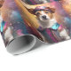 Uma divertida Jack Russell Terrier vestida com uma fantasia vibrante e caprichosa contra um pano de fundo brilhante e mágico. Essa design encantadora é perfeita para amantes de os animais.