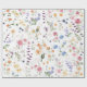 Papel de embrulho lindo e inspirado em boho com flores silvestres alegres em tons de rosa, lavanda, amarelo, azul e verde.