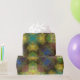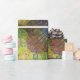 Este papel de embrulho apresenta um design vibrante e exclusivo. O fundo é um padrão de círculos amarelos e verdes, sobre o qual um padrão de formas pontiagudas de ouriço do mar roxo é colocado, criando um olhar divertido e atraente para os olhos.