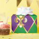 joias, fundo em Mardi Gras de losango roxo e verde, lírios de ouro decorados.