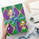 joias, fundo em Mardi Gras de losango roxo e verde, lírios de ouro decorados.