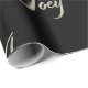 Sehr schönes edles personalisiertes Geschenkpapier im whitegold Lettering Look auf schwarz für Joey.