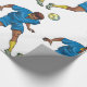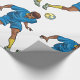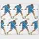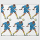 Um jogador de futebol de azul chutando uma bola. Este design parece realmente eficaz nestes papéis de enrolamento