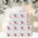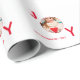 Um simples e moderno papel de embrulho de Natal minimalista em vermelho e branco. Um fundo branco chic, com a palavra JOY escrita com letras vermelho em negrito. A letra O é usada como quadro fotográfico. Personalize e adicione sua própria foto da família, nome e ano.