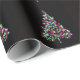 As luzes de uma árvore de Natal formam um efeito espantoso de um boque em tons de rosa, azul, verde e roxo a preto.