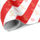 Padrão cardíaco de alegria festiva sobre fundo vermelho e branco listrado Papel de embrulho para presente.