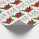 Este elegante papel de embrulho apresenta uma imagem festiva de poinsettia vermelha e verde com folhas verdes, bagas e uma fita de ouro. A par da imagem de poinsettia estão as palavras associadas ao Natal, incluindo a alegria, o amor, a paz, o riso, os presentes, a música, a família, os amigos, a felicidade e as crianças. O texto está vermelho, verde, dourado e azul. A imagem e o texto são colocados sobre um fundo branco puro. Muito bonito!