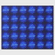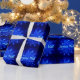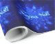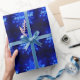 Um enxame de flocos de neve fractais azuis. "Joyeux Noel" aparece em azul e branco brilhantes.
