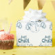 A cute, playful doodle like illustration of a snowman surrounded by tree and a text, that says "Just Chill".