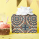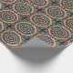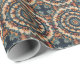 Um padrão de colcha geométrica vibrante irradia do centro, criando uma intrincada design de mandala com várias cores, incluindo tons de verde-lacrimejo, marrom-ferrugem e bege