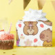 Make birthday gifts extra adorable with this kawaii capybara wrapping paper, featuring sweet cartoon capybaras enjoying strawberries, watermelon, cake, and bubble tea. The playful repeating pattern sits on a bold dark background, making colors pop and gifts look fun and exciting.