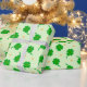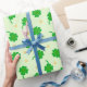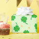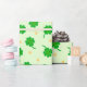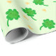Repete o padrão de quatro trevos de folha e corações amarelos num fundo verde-claro. Excelente para Dia de São Patrício.