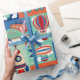 Um Papel De Onda De Viagem De Aniversário Colorida E Brilhante, Projetado Com Barcos, Comboios, Caminhões E Foguetes