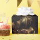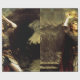 Um cavaleiro com uma armadura brilhante, com uma capa vermelha a passar atrás dele, ergue reverentemente uma coroa de ouro sobre sua cabeça contra um pano de fundo montanhoso. A cena exude uma aura de heroísmo medieval e busca épica. Esta pintura é chamada "Rei Arthur" por Charles Ernest Butler.