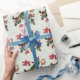 Gift-wrapping paper, king bird, poinsettias and holly for the holidays.