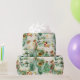 Este padrão tem um design de papel de empacotamento de natais vintages. Ele tem um padrão repetitivo com uma paleta de cores macia e esmaecida, principalmente em tons de verde-menta, branco e vermelho-acinado/dourados. A design inclui elementos clássicos de férias: árvores de Natal (decoradas com neve branca/bloqueio) Grandes ornamentos (alguns redondos, alongados e detalhados) Carneiros e pequenos arcos/coroas que o Pai Natal encara com um riacho branco ou nuvem Pequenas figuras de anjo com asas Uma cena de inverno ao ar livre mostrando uma casa, árvores e um trenó atravessando uma ponte As palavras "Feliz Natal" são espalhado pelo padrão. Ele tem uma sensação nostálgica geral do século médio.